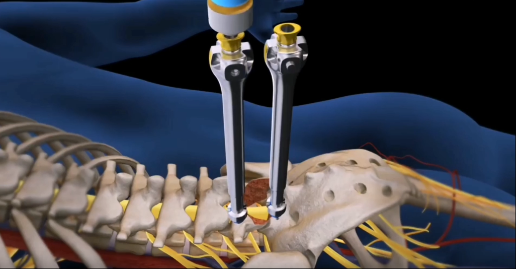 腰椎融合手術(shù)是腰椎外科手術(shù)常見(jiàn)的一種方法,主要適用于腰椎間盤突出癥、腰椎管狹窄和腰椎滑脫的治療。手術(shù)中需要將椎間盤摘除,使用椎間融合器,并取自體骨植骨,將上下兩個(gè)椎體融合到一起變成一塊骨頭,并需要使用椎弓根釘系統(tǒng)固定,防止在未達(dá)到骨性愈合前出現(xiàn)椎體脫位的并發(fā)癥。